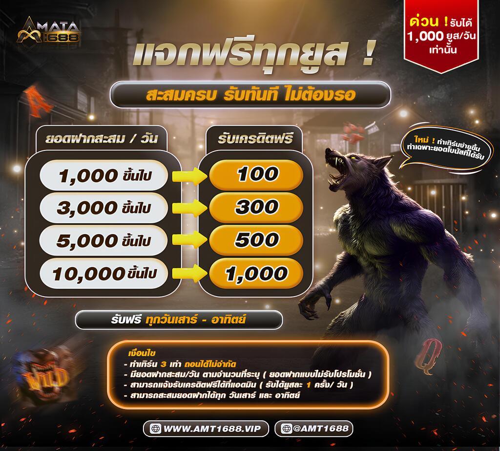 เพียงลูกค้ามียอดเล่น 500 ต่อเนื่องทุกวัน รับโบนัสฟรีทันที